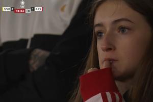 当谢赫·查尔斯攻入绝杀球后,球场看台上的球迷呈现出两种极端情绪,圣徒球迷兴奋狂喜,而镜头则拍到有阿森纳小球迷拿衣服抹眼泪,父亲赶忙送上拥抱和安慰。