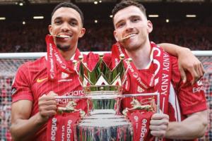 英超官推晒出罗伯逊与阿诺德的合照,配文写道:“前队友阿诺德是英超历史上唯一一个比罗伯逊助攻多的后卫。”