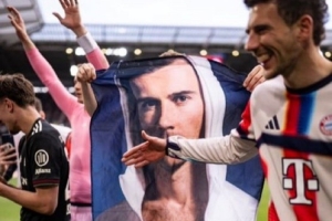 贴脸开大!拜仁众将赛后庆祝时举着格雷茨卡的性感身材海报